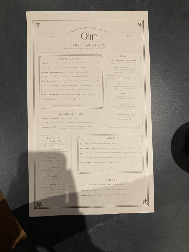 Olin Bar & Kitchen Menu